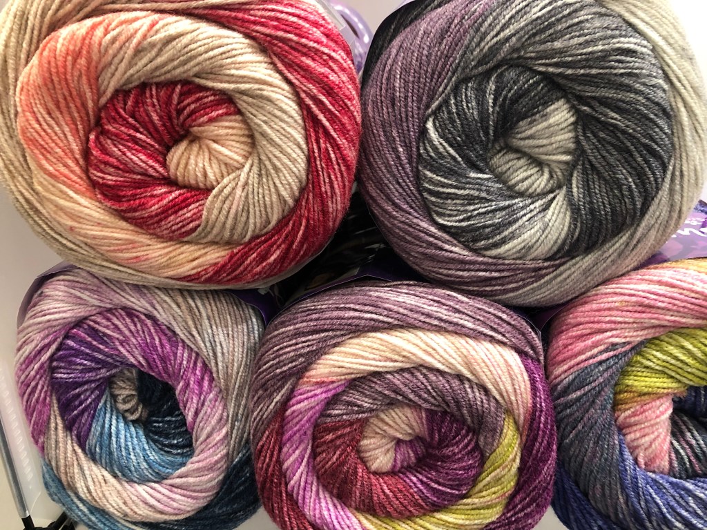 Batik Swirl 200g DK £10 L – coral reef, R – Purple mist