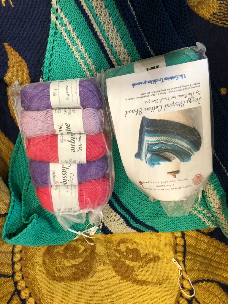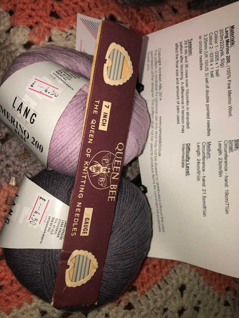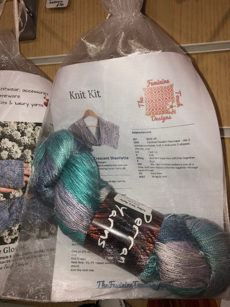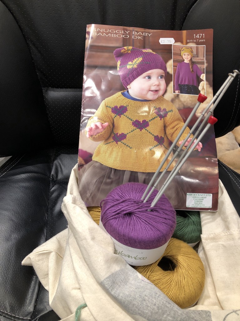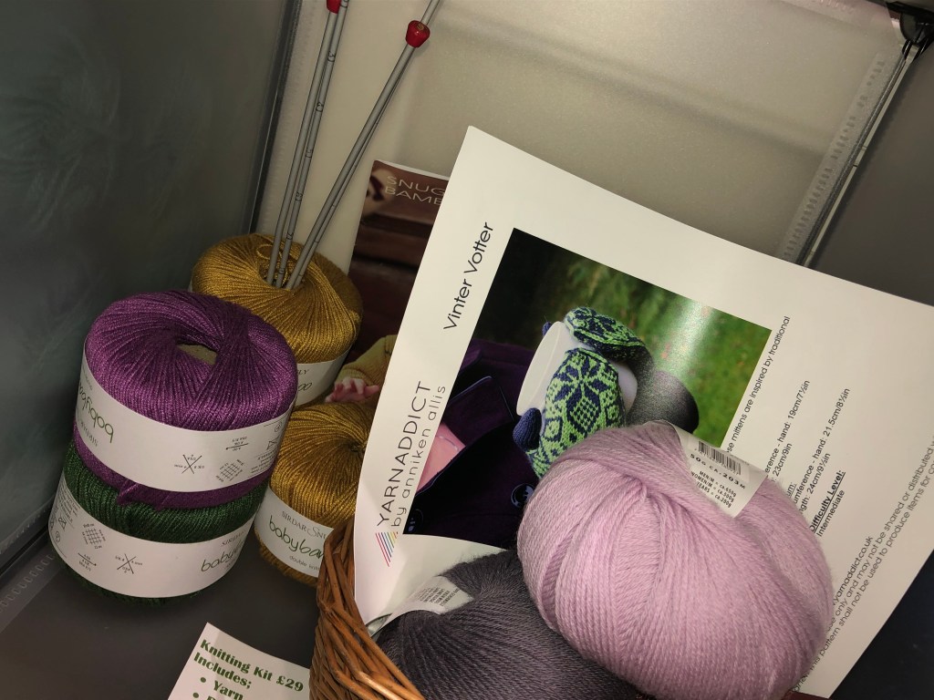 Knit kit pattern, needles and yarn all in a tote bag £25